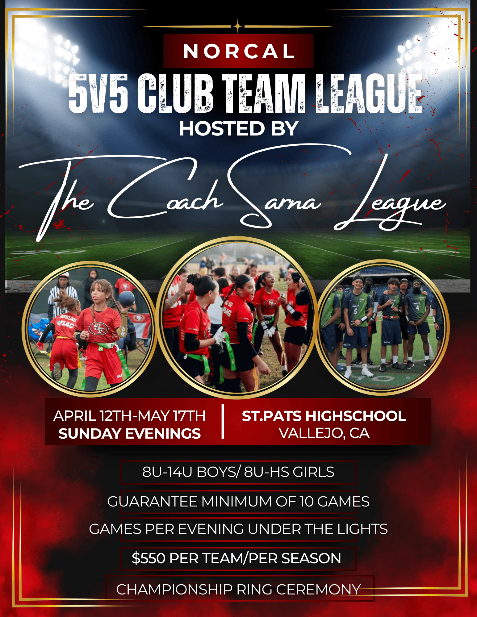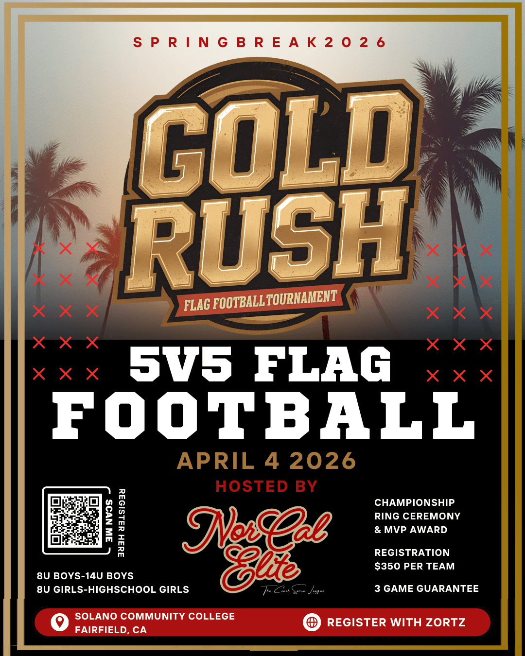 Get ready to experience the ultimate 5v5 Flag Football showdown at the Gold Rush 5v5 Flag Football Tournament!